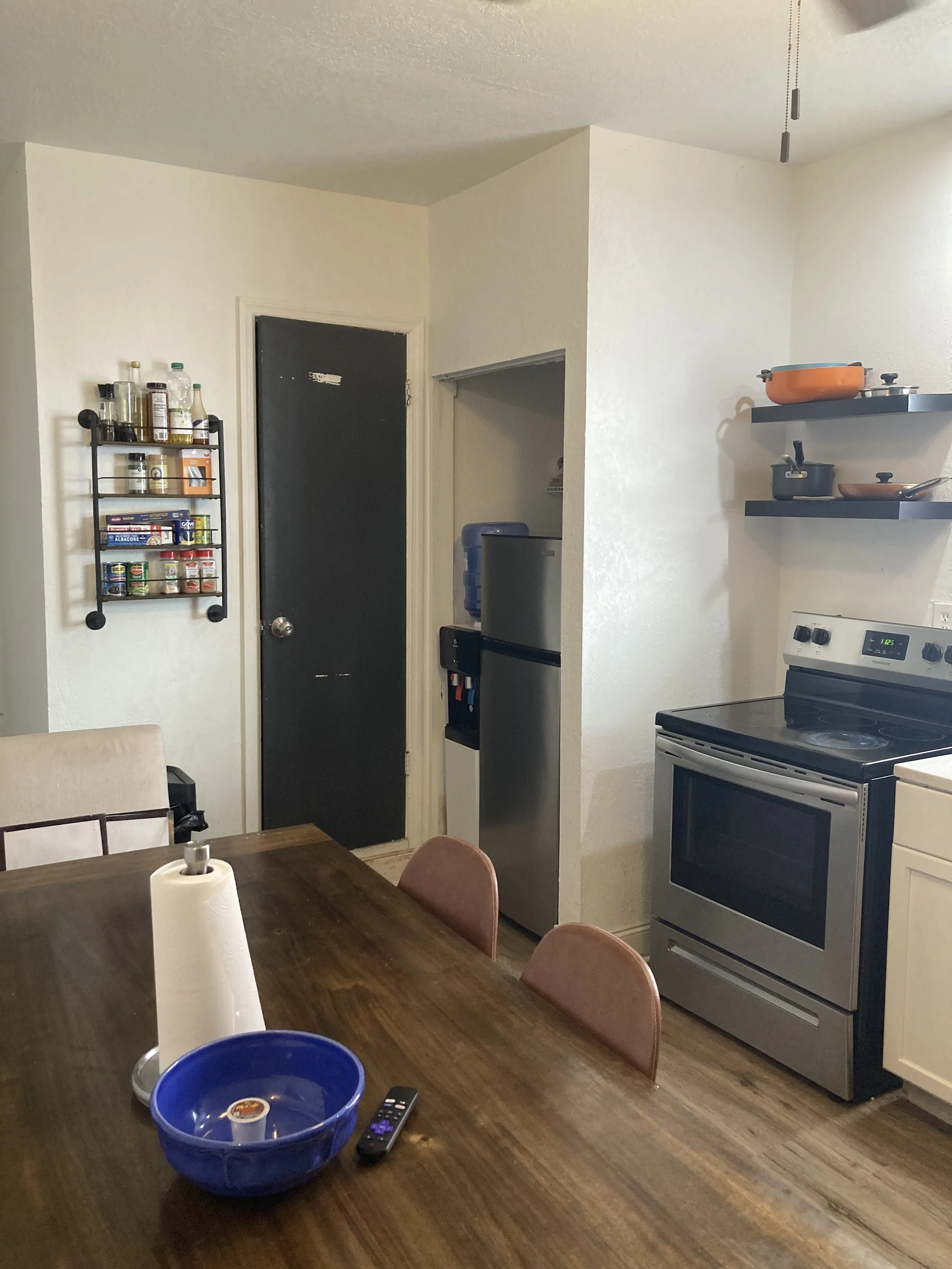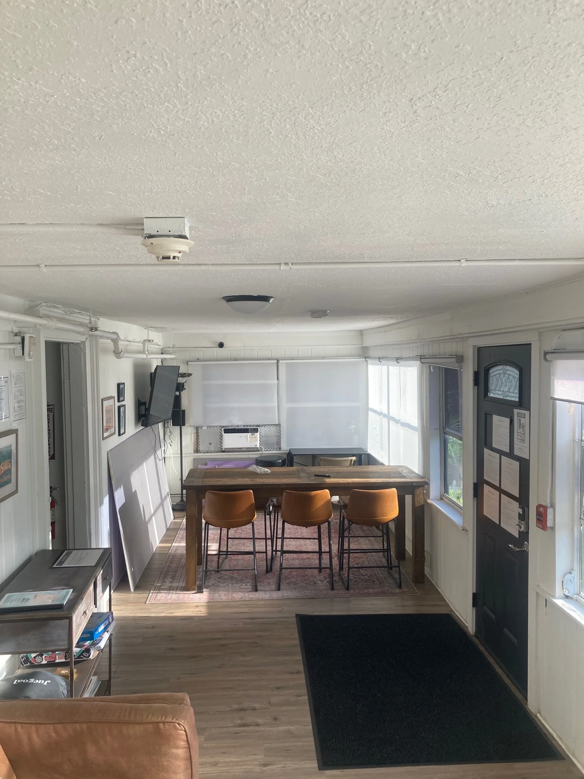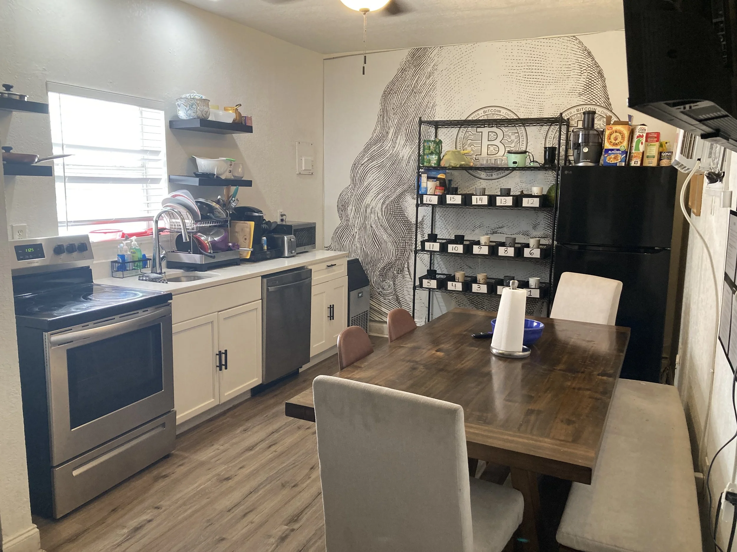 For people who like to cook, we have a full kitchen/dining room, with two refrigerators(in addition to each furnished room having private mini-fridges), shelf-space/bins are available for personal foods to be stored, a filtered hot/cold water dispenser is available to stay hydrated, we have a coffee maker for our bean drinkers, a microwave for quick heating, a full-size stove, and a toaster for toasting; we also have some great new amenities coming soon, including an industrial ice machine, and a vending machine that, not only, provides food and drink, but also toiletries such as toothbrushes and toothpaste, as well as laundry detergents and dryer sheets and other useful items.